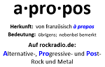 Apropos steht für Alternative-, Progressive- und Post- Rock und Metal.
